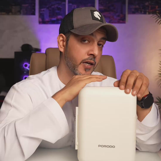 ثلاجة صغيرة Ecochill من Porodo Lifestyle بسعة 4 لتر، مصنوعة من مادة البولي بروبيلين، بقوة 18 - 28 واط، تعمل بهدوء مع تبريد سريع.