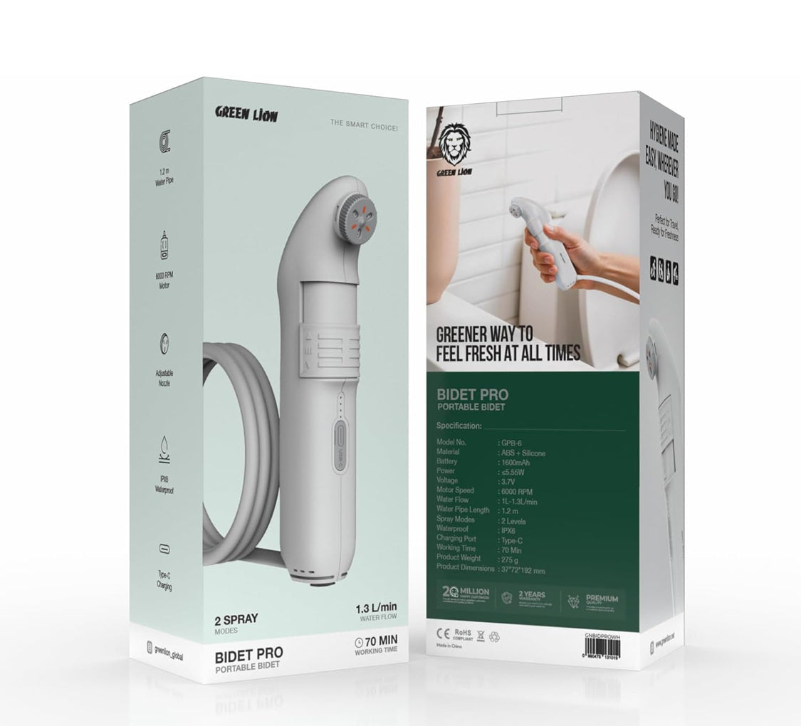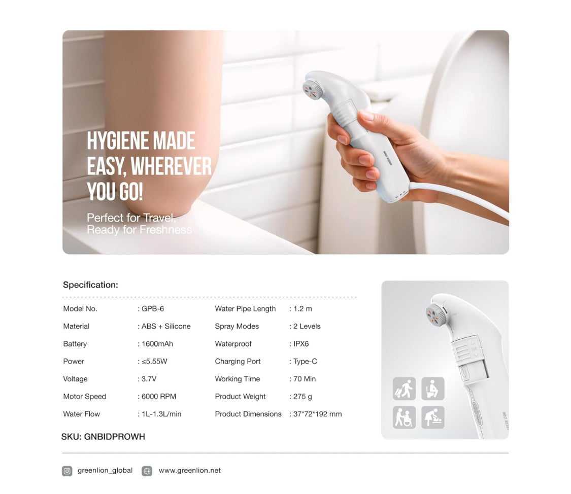 جرين ليون شطاف برو قابل لاعادة الشحن، شطاف خفيف الوزن ومقاوم للماء مثالي للسفر، وضعان للرش وفوهة قابلة للتعديل مع تدفق مياه قوي 1.3 لتر/دقيقة للتنظيف الفعال، 70 دقيقة عمل