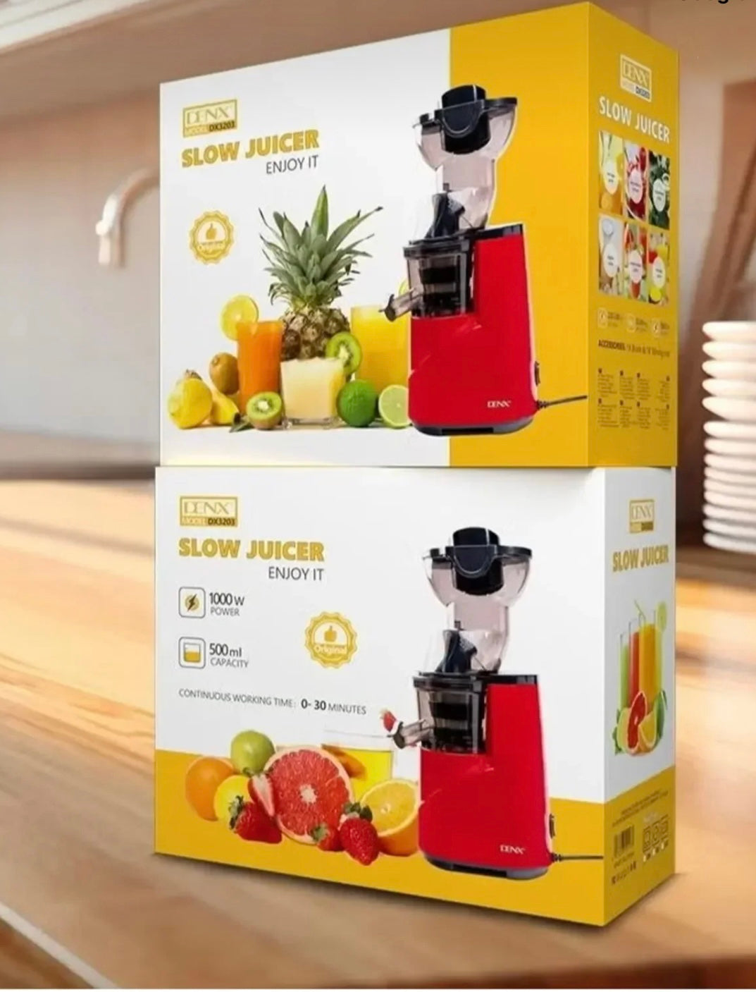 - أتي عصارة DENX بمحرك قوي، مما يسمح لها بالعمل بكفاءة عالية لاستخراج العصير من الفواكه والخضروات الصلبة.