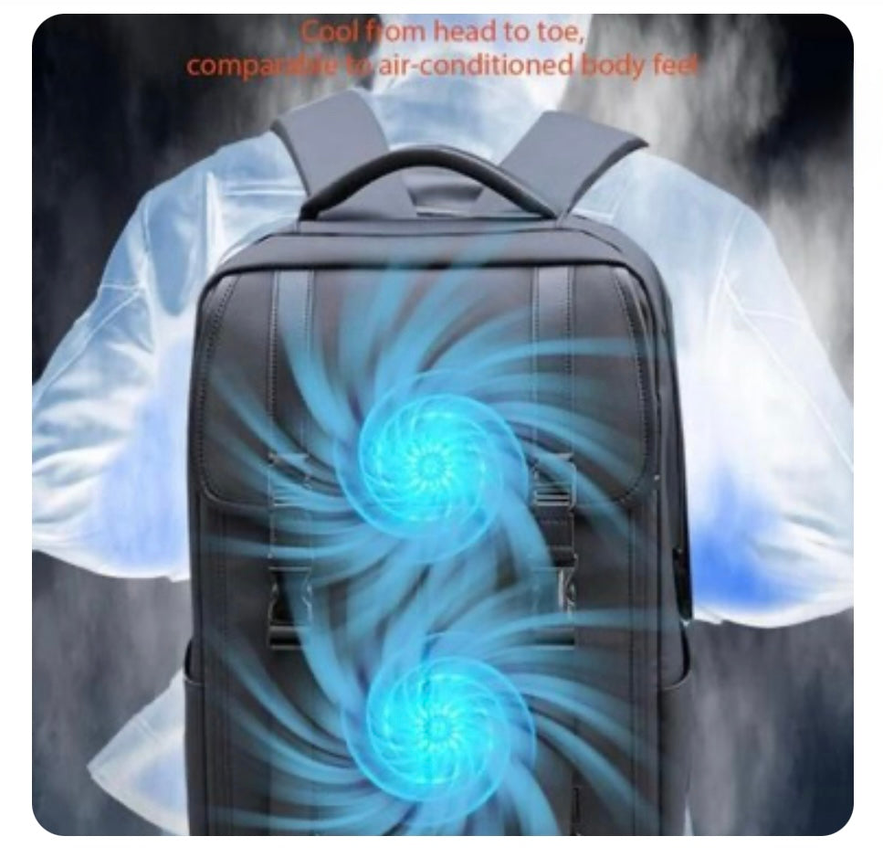 حقيبة ذكية تعمل مع مروحة تبريد بالإضافة إلى بنك الطاقة لشحن الهاتف
