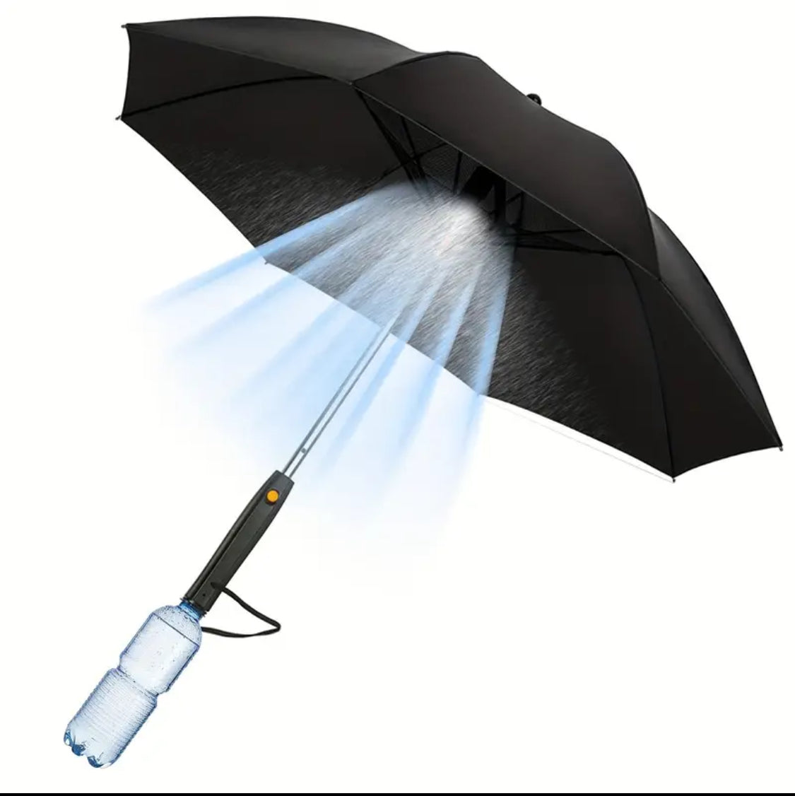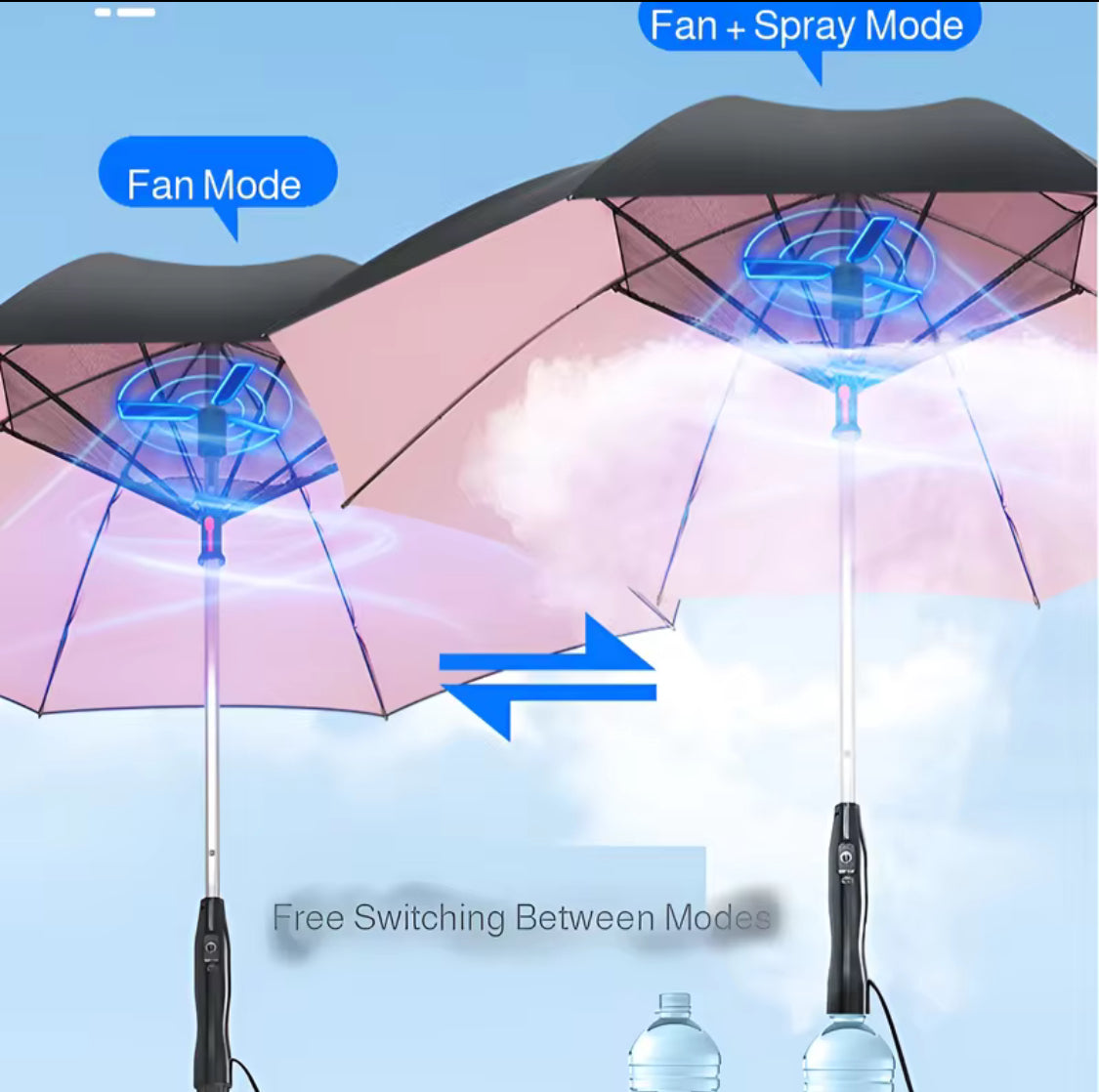 مظلة 3 في 1 مظلة، مروحة وبخاخ رذاذ قابلة للشحن