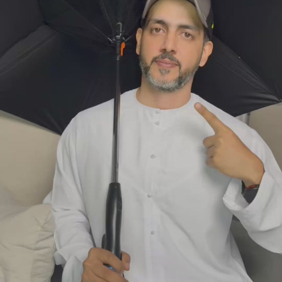 مظلة مع مروحة وستر: فاز الحرارة مع المظلة المزدوجة هذه المظلة ذات الوظائف المزودة بمروحة وماستر، تقدم كلاً من الشمس والضباب المنعش للحفاظ على البرودة في الهواء الطلق