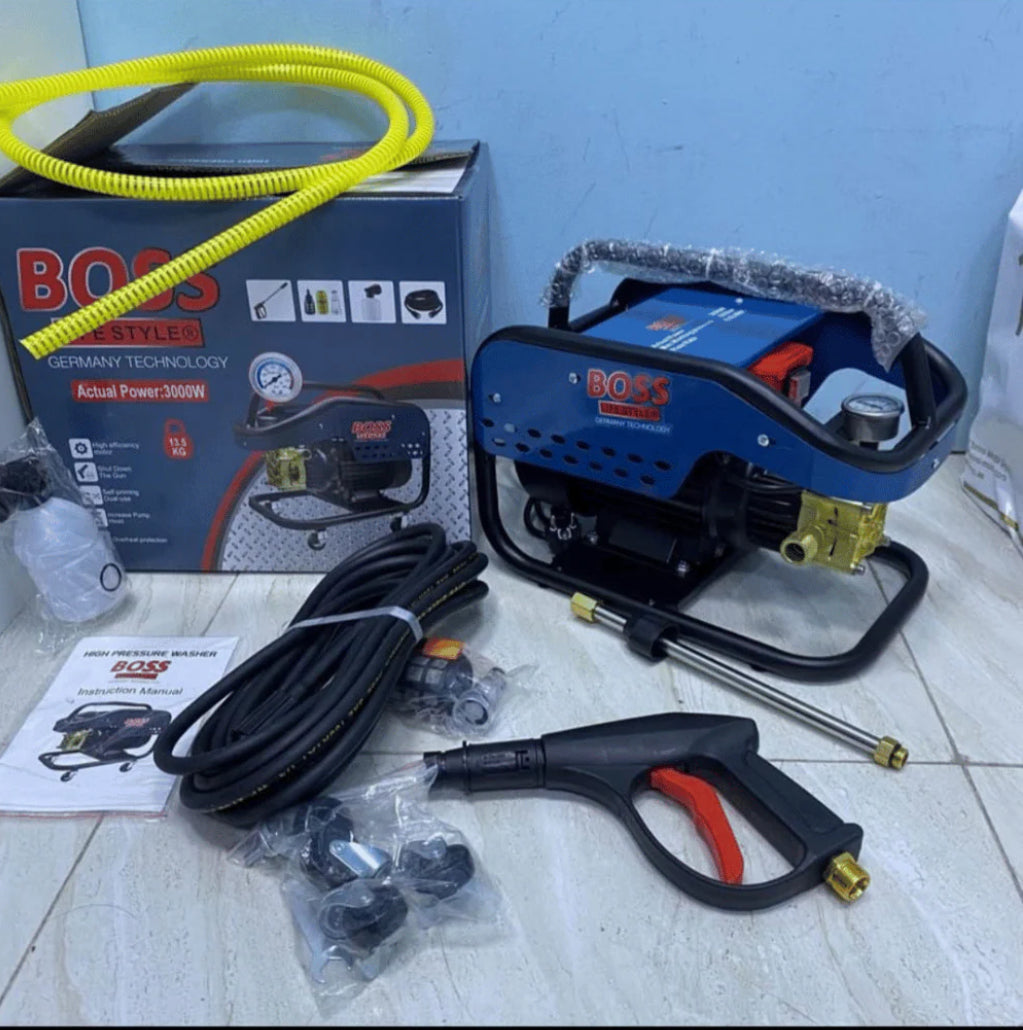 احصل على تجربة تنظيف احترافية وقوة ضغط مذهلة مع ماكينة غسيل BOSS بقوة 3000 واط! تصميم محمول وعصري يتيح لك نقلها بكل سهولة، مع مكونات قوية وملحقات متكاملة تضمن لك أداء مثالي في تنظيف السيارات, الأرضيات, الجدران, والمكيفات بكل كفاءة.